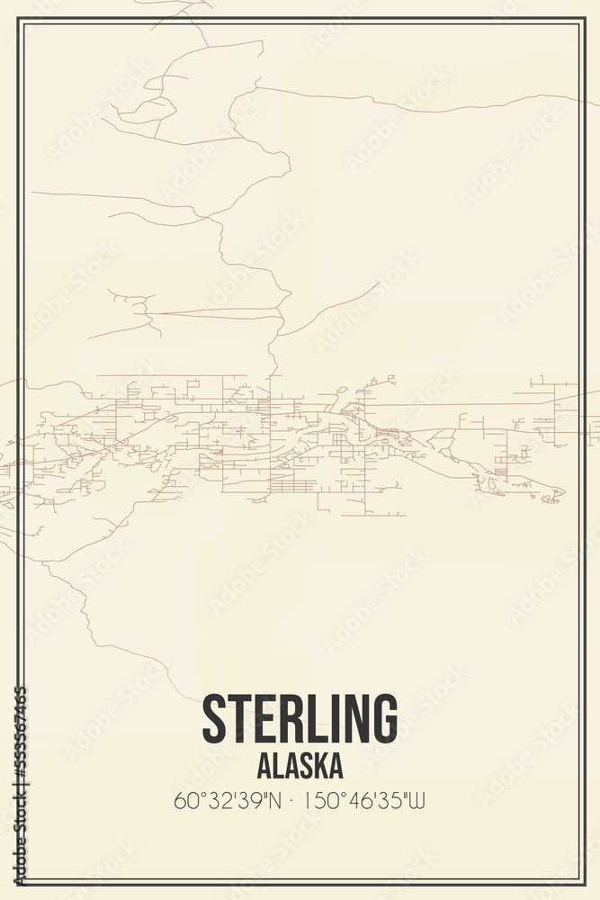 Retro US city map of Sterling, Alaska. Vintage street map. Stock